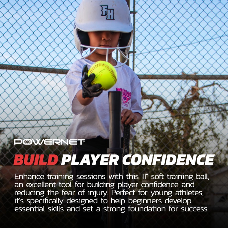 - CUSHIONED CORE FLEXI-SOFT 11″ SOFTBALLS: The cushioned core 11-inch softballs reduce impact making it a great training aid for young athletes. The softer balls help develop player confidence by reducing the fear of injury