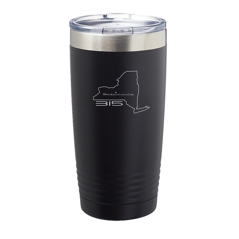 “315 Baldwinsville” Map of NY 20oz. Laser-Engraved Insulated Tumbler in black and red!