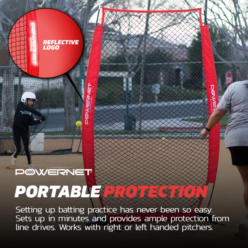 - PORTABLE, INNOVATIVE DESIGN: This 7 ft I-Frame screen is expertly built as softball and baseball training equipment, for use with both right and left-handed pitchers