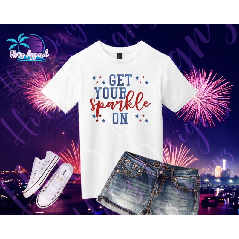 Super soft, lightweight and comfyDistrict tank and tee is embellished with glitter and pearlescent metallic sheen electric HTV design that is sure to grab attention of your patriotism.A must have for your 4th of July festivities!