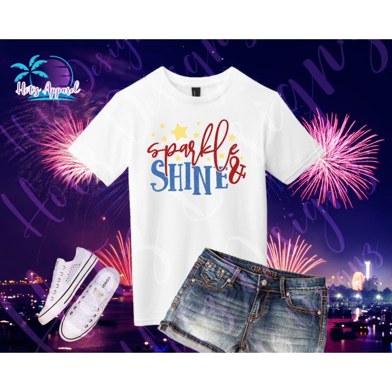 Super soft, lightweight and comfyDistrict tank and tee is embellished with a glitter design that is sure to grab attention of your patriotism.A must have for your 4th of July festivities!