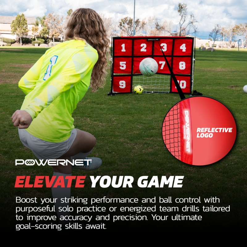 - 6X4 FT SOCCER GOAL WITH TARGETS: The PowerNet Soccer Target Goal features numbered targets, ranging from 1 to 10, each measuring 14 x 15 inches, making it an excellent tool for precision training. This training goal is perfect for players in all positions