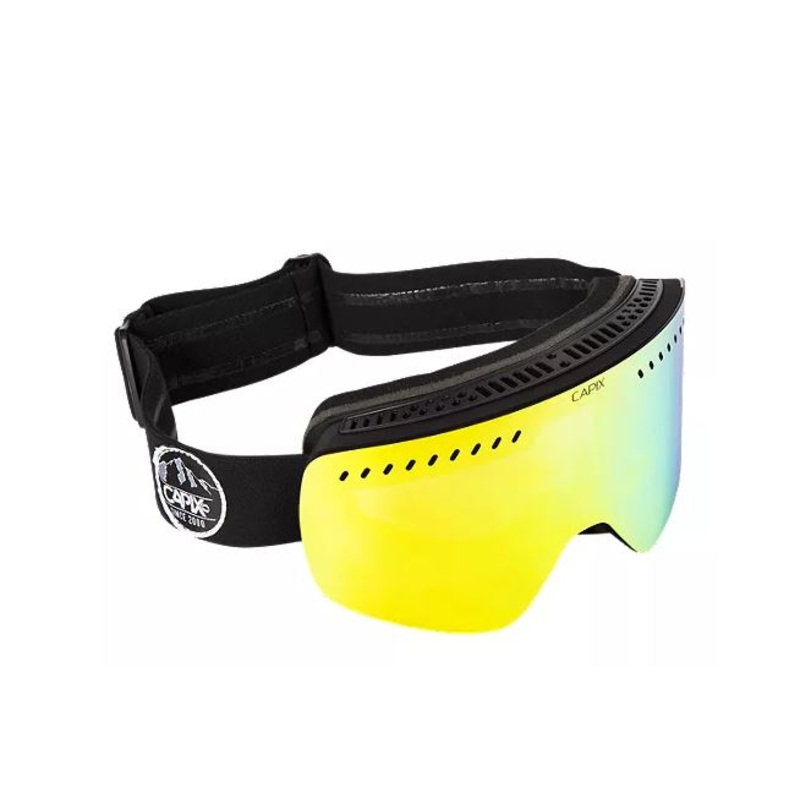 New is the CAPIX Academy snow goggle. This frameless design maximizes your viewing window through the lens for a greater field of vision. The gold mirrored lens is stylish and is great for sunny or low light conditions. Comes treated with a anti-fog and scratch resistant coating.