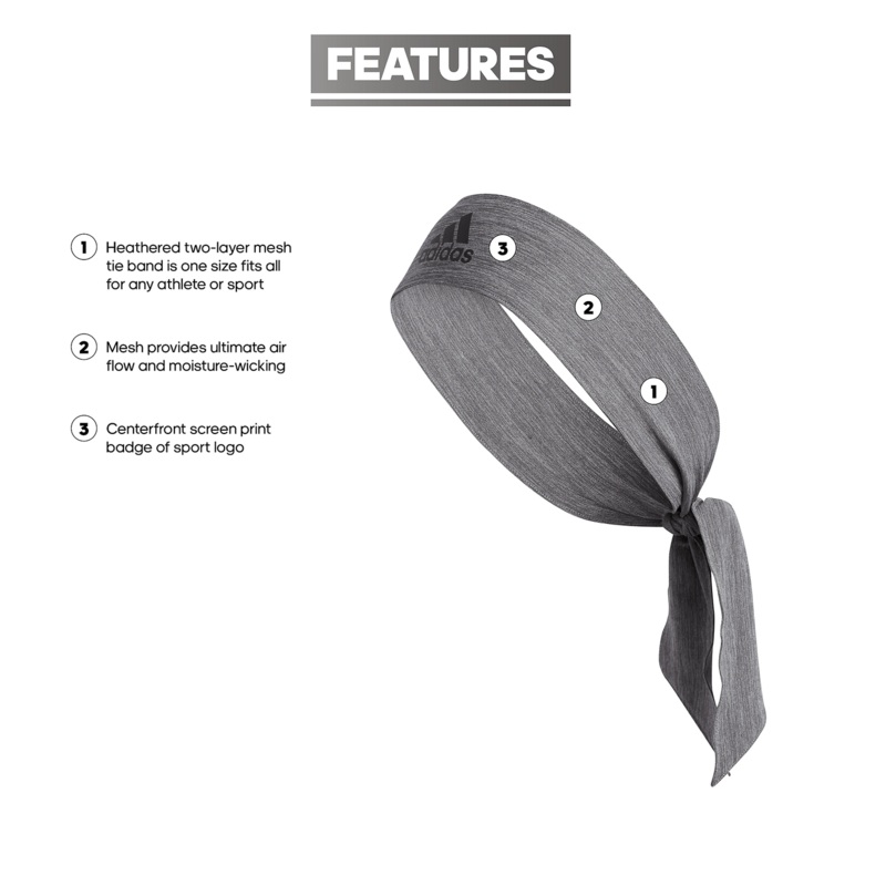 - Heathered two-layer mesh tie band is one size fits all for any athlete or sport