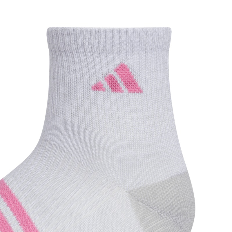 Every day is a new adventure. Every day is a chance to run, explore and play. Along the way, these girls’ adidas socks supply foot-hugging comfort and a fresh, sweat-free feel. The quarter-length cuff stays in place when they move. There are six pairs one for almost every day of the week.