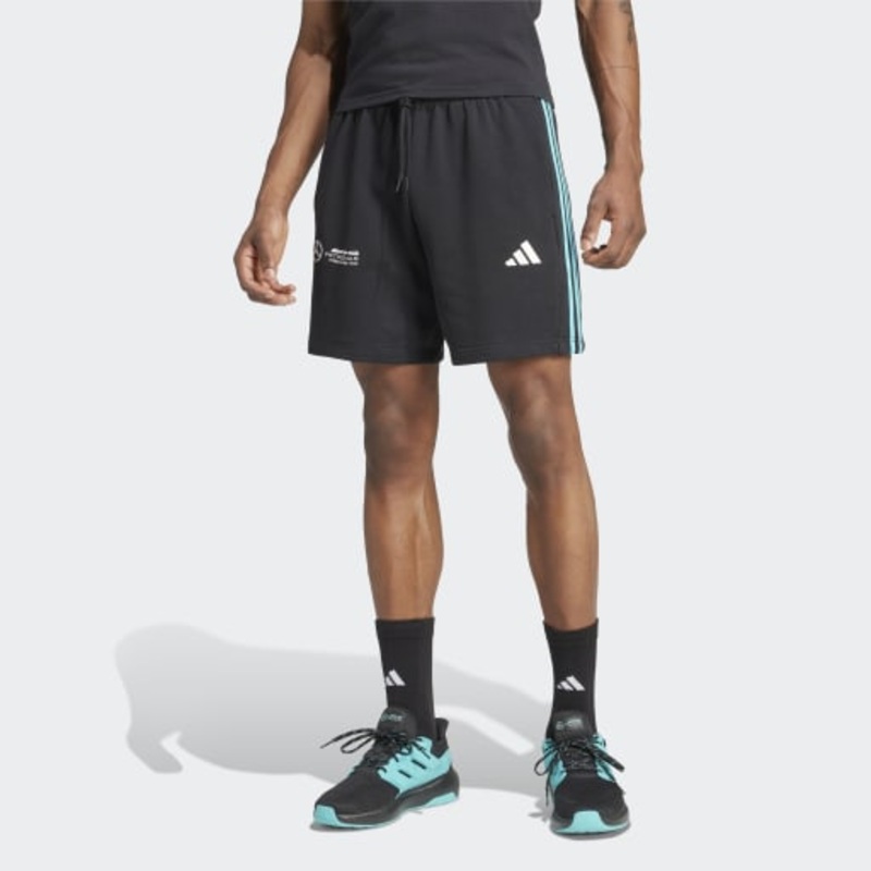 Keep your look casual and comfortable while representing for the Mercedes – AMG Petronas Formula One Team in these shorts from adidas Motorsports. The cotton French terry build is makes these shorts soft to the touch, while the draw cord on the elastic waist ensures the perfect fit. Mercedes – AMG Petronas Formula One Team branding on the leg provides an authentic finish.