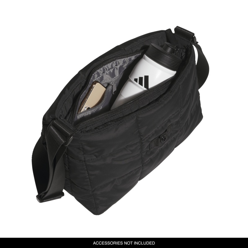 Keep the essentials within easy reach while enjoying the plush, cozy feel of this Quilted Crossbody from adidas. The strap adjusts up to 55 inches, giving you carrying options. The zippered main compartment with a top flap secures a laptop or a tablet, any small items and more.