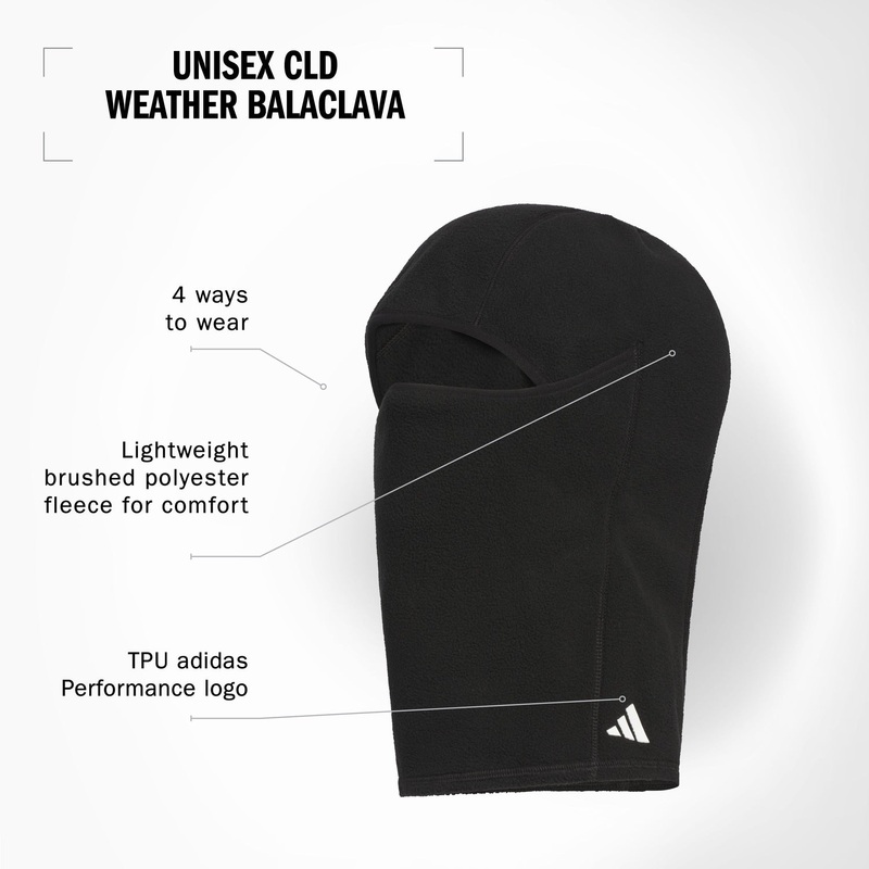 If you want lightweight warmth for your cold weather workout, you just found the balaclava for you. Change it up four different ways so you can adjust as you get warm or the temps shift. An embroidered adidas logo adds a little something extra.