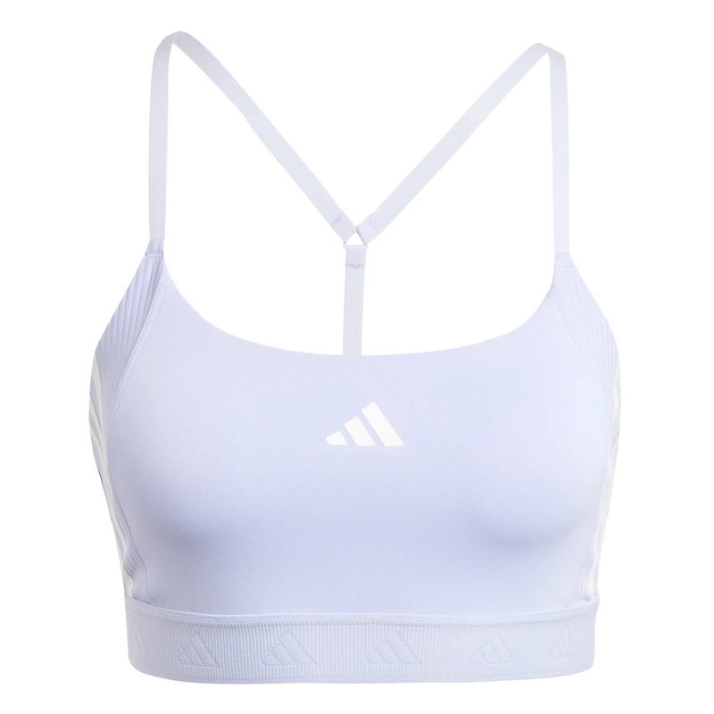 Transition seamlessly from the studio to the street in this adidas bralette. The pullover style offers light support for barre or Pilates. A ribbed jacquard under-bust band features a logo repeat for sporty style. CLIMACOOL wicks and disperses sweat for cool, dry and distraction-free performance.