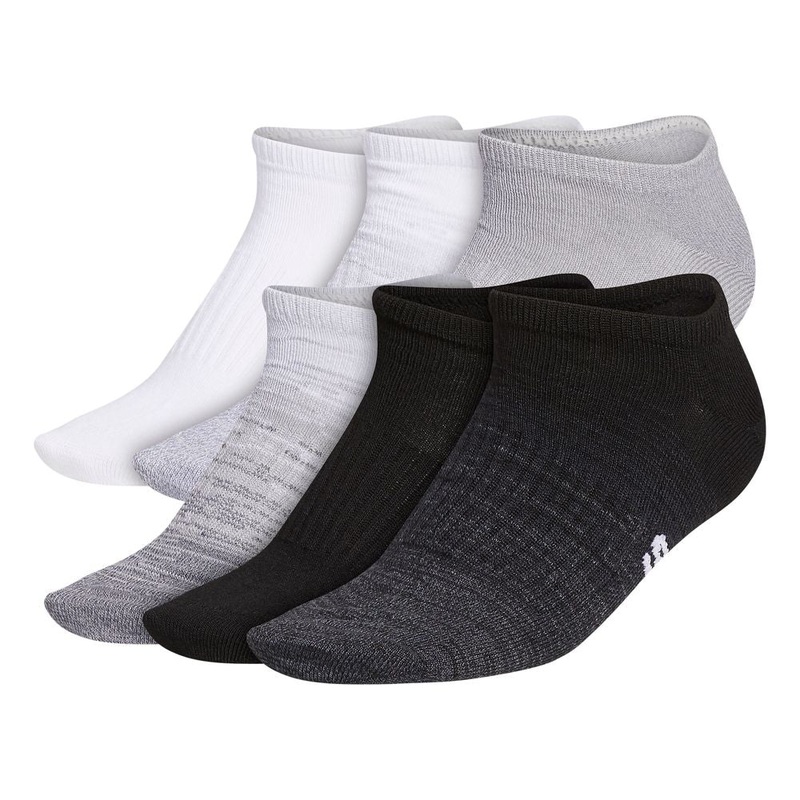 Keep your workout look low key in these women’s adidas training socks. The no-show socks are made of soft, stretchy yarn and have a lightweight, barely-there feel. They come in a pack of six.