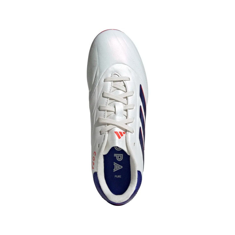 From brain to boot, and back again. Connect with the ball on every level in adidas Copa Pure 2. High-performance features and classic details converge in these comfortable Elite football boots for juniors. Their quilted cow leather forefoot delivers a soft touch. The specialist firm ground outsole makes for unhurried play on dry, natural grass. This product features at least 20% recycled materials. By reusing materials that have already been created, we help to reduce waste and our reliance on finite resources and reduce the footprint of the products we make.