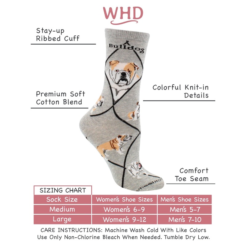 - PERFECT FOR DOG LOVERS – Did you know the American Bulldog can jump six feet in the air? It is stocky, agile, and built for hard work. Honor yours by wearing the Wheel House crew sock that features an American Bulldog design.