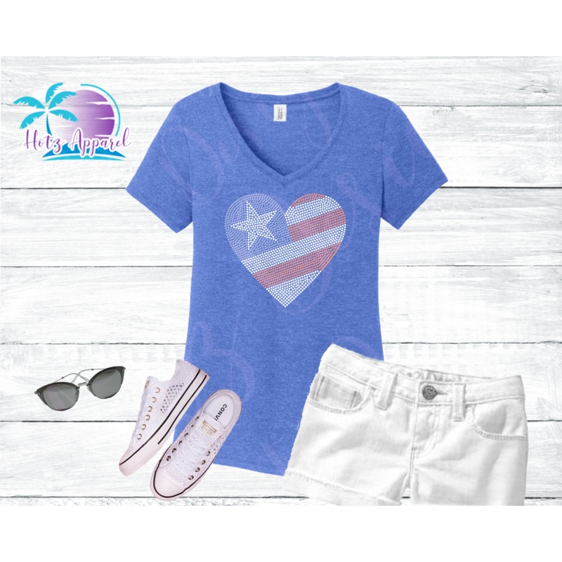 American Flag Heart Rhinestone Tank Top / Shirt