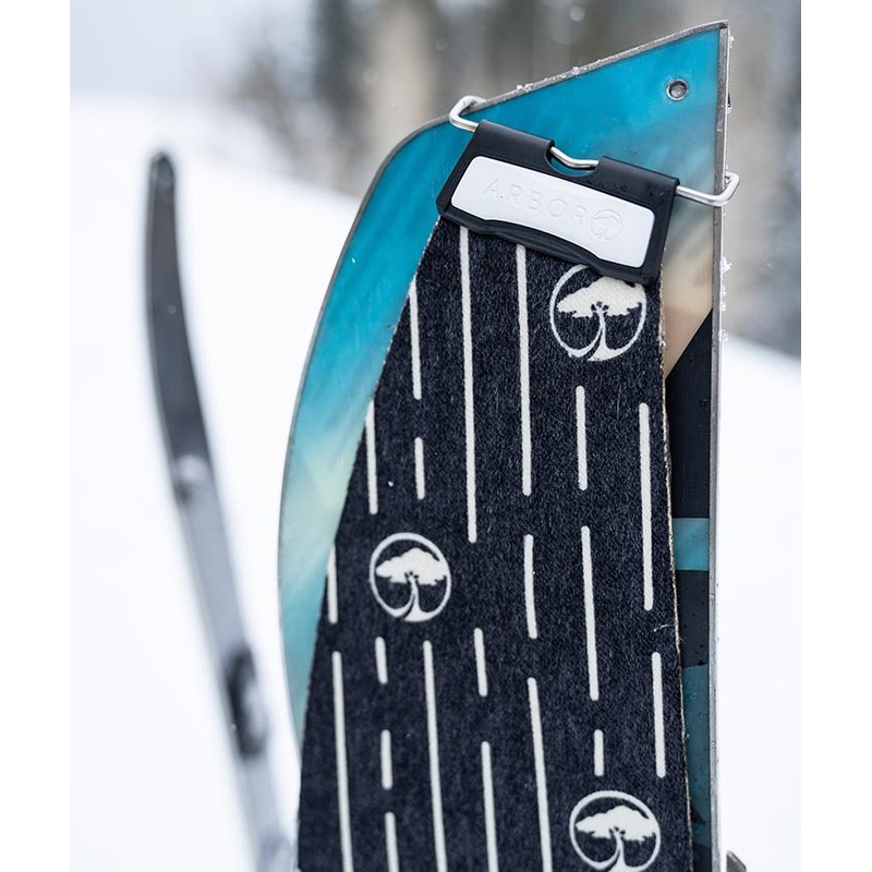 The newest addition to our expanding arsenal of Arbor quality backcountry products, were proud to introduce the Angusta Splitboard Climbing Skin. Designed to perfectly compliment the Iguchi Pro Split, Coda Split, and Swoon Split models, the Angusta Split Skin is built with a 70/30 Mohair/Nylon blend that optimizes uphill grip while maintaining downhill glide. Weve used a glue-free adhesive that upholds a strong connection with the base of your splitboard. One size fits all with this trim-to-fit Austrian-made, Arbor quality splitboard skin.