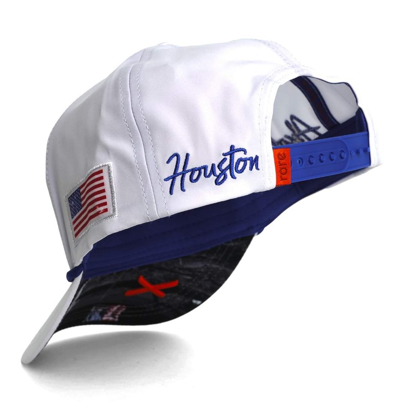 This rare edition hat tells the story of the Apollo 11 mission with the exact USA flag from Neil Armstrong’s suit stitched on the side, and a real photo of the moon landing under the brim.