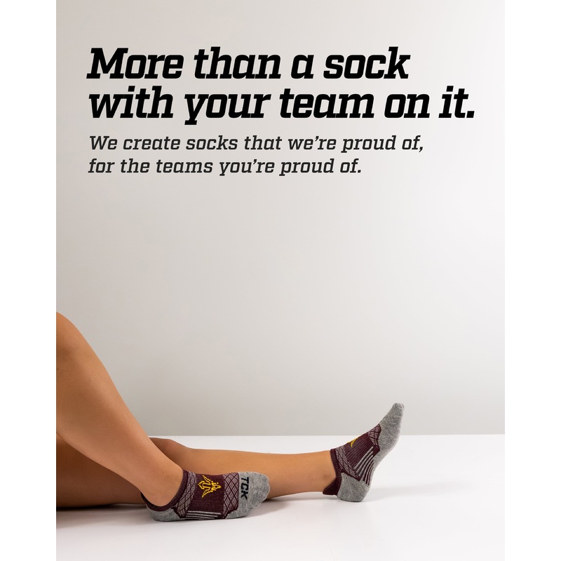 Step up your sock game with TCK’s Arizona State Sun Devils no show socks, high performance NCAA sock made in the USA. Designed for sneakerheads, golfers, runners, and fans alike, these socks feature a soft merino wool footbed, breathable mesh upper, arch support, and a smooth toe seam. The heel tab protects without showing. Perfect for all-day comfort, year-round wear, and gifting for birthdays, Father’s Day, grads, or Christmas.