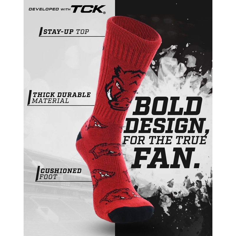 Step into the Mayhem and show off your Razorbacks pride with socks built for both spirit and performance. Whether you’re hitting the gym or heading to class, these versatile socks pair perfectly with sneakers or slides. Designed for comfort, breathability, and durability, they make a great gift for Fathers Day, birthdays, back-to-school, or stocking stuffers. Made from a high-quality blend of 94% Polyester, 4% Rubber, and 2% Spandex. Woo Pig!