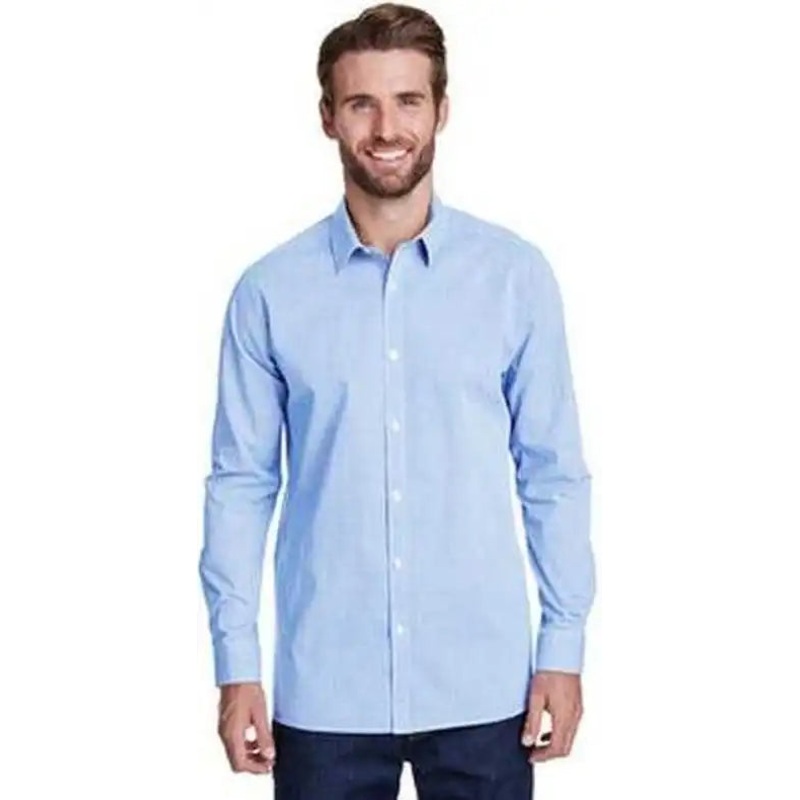 Artisan Collection by Reprime RP220 Men’s Microcheck Gingham Long-Sleeve Cotton Shirt – Light Blue White