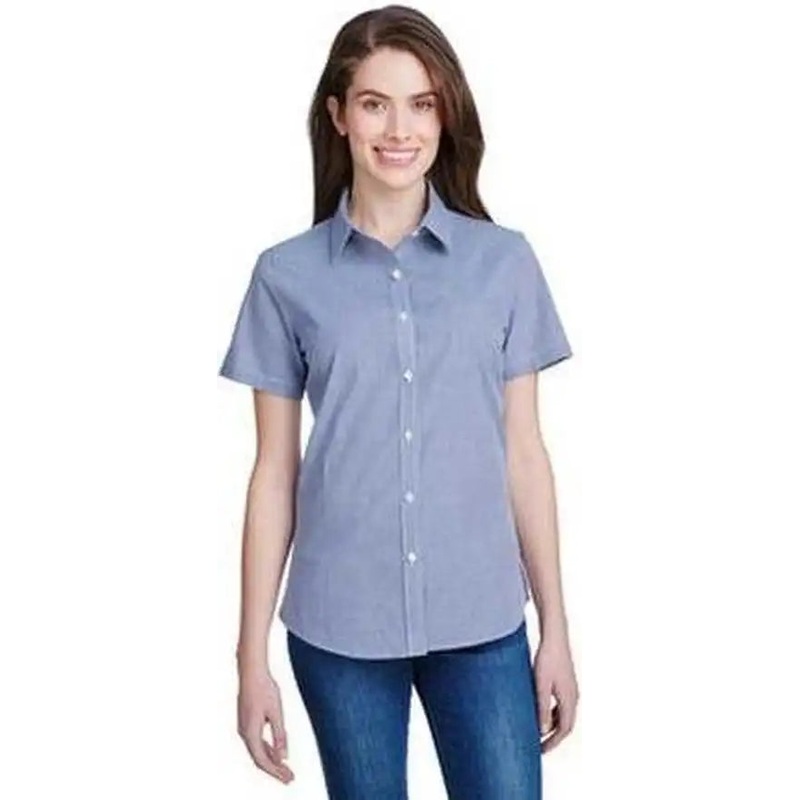 Artisan Collection by Reprime RP321 Ladies’ Microcheck Gingham Short-Sleeve Cotton Shirt – Navy White