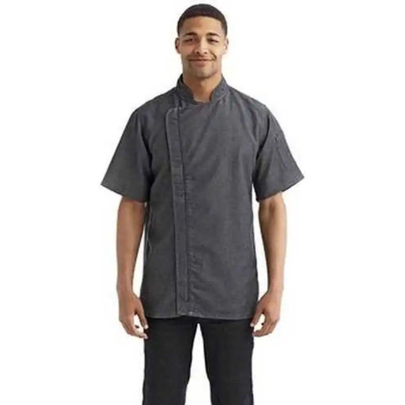 Artisan Collection by Reprime RP906 Unisex Zip-Close Short Sleeve Chef’s Coat – Black Denim