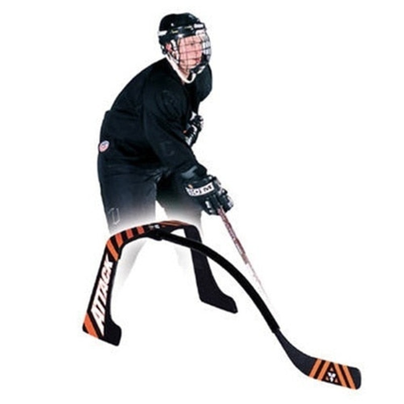 The Attack Triangle Pro is one of the best training aids to practice in-game 1-on-1 moves as the Attack Triangle Pro simulates a defenders skates and stick. The Attack Triangle forces players to keep their head up and improve their stick handling ability around a defender. The Attack Triangle will also help you learn passing lanes between a players skates and their extending stick. It forces players to develop quick puck movement skills, stick handling ability and an understanding of passing lanes. By using the Attack Triangle at home or as a replacement of ordinary cones at practice, players naturally start working more creatively on their skills in a fun way. The Attack Triangle Pro includes spikes under the legs and stick to hold better on the ice, as well as two fasteners to attach the legs to the main unit and keep the product in place should it be bumped during practice.