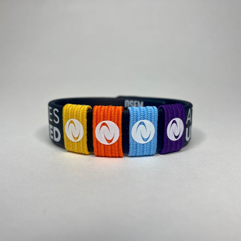 This limited edition wristband features both brand logos and Athlete Unlimited’s signature colorways.