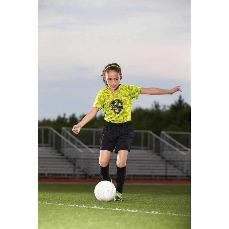 100% polyester wicking mesh – Wicks moisture away from the body- Girls’ fit- Covered elastic waistband with inside drawcord- 5-inch inseam- Girls inseam graded- Double-needle hemmed bottom. Also available in Ladies’, Style 960.