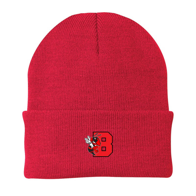 B’ville Pop Warner FOOTBALL Beanies in black and red w/ embroidered logo.