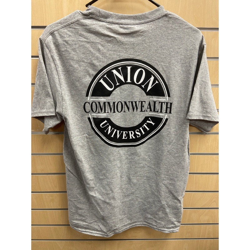 Left Chest union commonwealth university white and black imprint