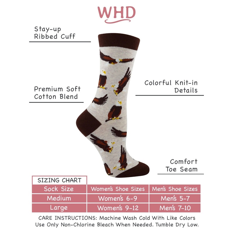 WHD Bird Lovers Socks are made up of 65% Cotton, 20% Polyester, 12% Nylon, and 3% Spandex.