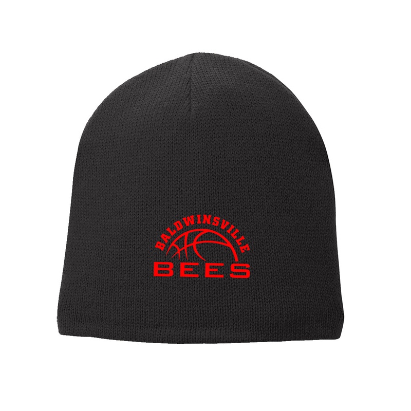 “Baldwinsville Bees” Fleece-lined Beanie in black, white, and red