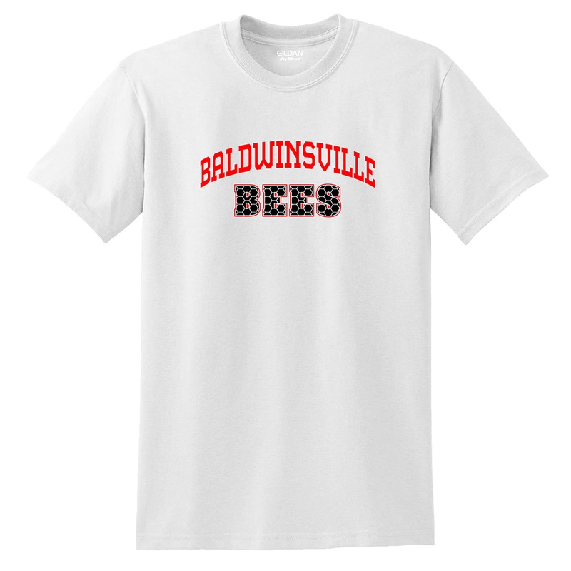 “Baldwinsville Bees” Honeycomb Design T-shirts in red, white, blue, black, and gray!