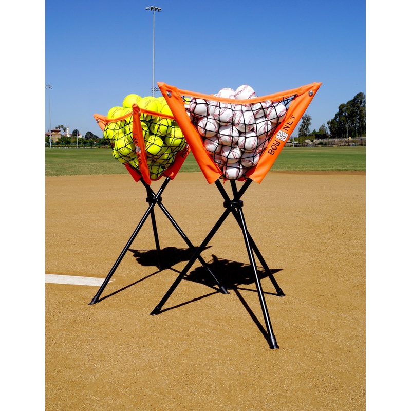 Add convenience to your practices with Bownet’s Multi-Sport Ball Caddy. Measuring 35″ tall, the ball caddy holds 40 softballs, 80 baseballs, and 90 tennis balls at hip level to ensure an uninterrupted coaching experience on the field and in the gym. It is constructed from a lightweight powder coated steel frame that can easily pop open and collapse to be portable anywhere. The nylon netting and canvas cover are engineered to last throughout the seasons and add durability and resilience to your practice experience. The caddy comes with three non-marking rubber feet to prevent damage to floors and provide stability and traction indoor and outdoor. After practice, simply collapse the caddy and place in the included carrying bag for easy transportation and storage. One year limited manufacturer warranty available. Play Anywhere, Play Now, Play Bownet!