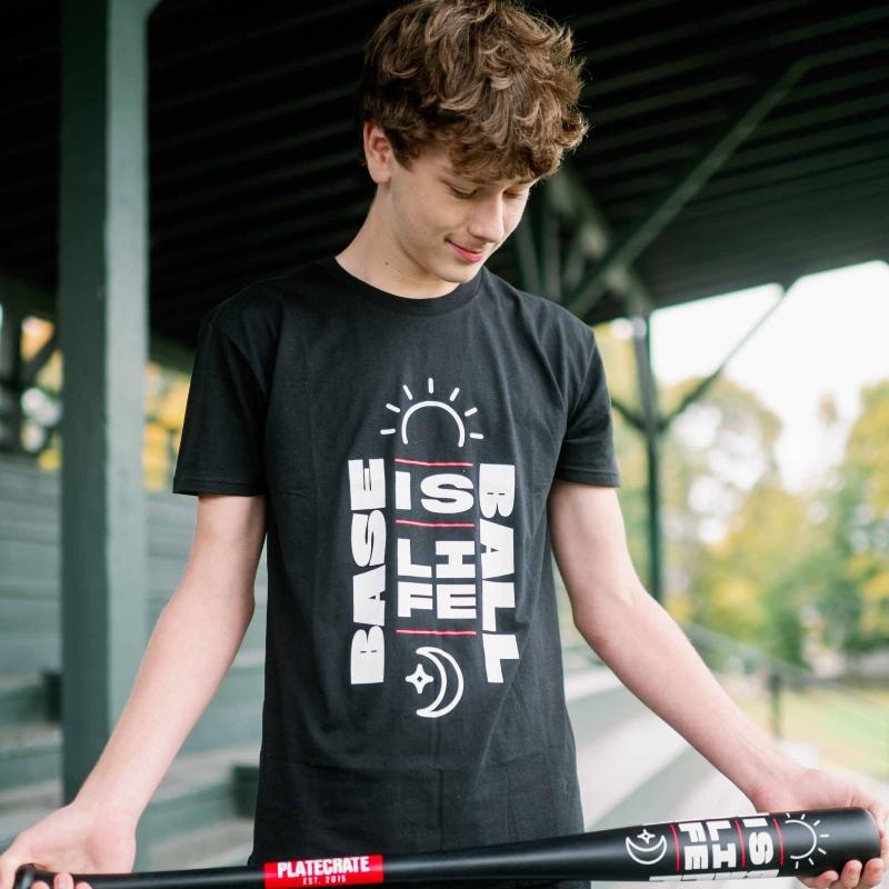 Introducing the Plate Crate “Baseball Is Life” Black Baseball T-shirt a must-have for every devoted baseball enthusiast! Immerse yourself in the essence of the game with this sleek and stylish black tee that seamlessly blends comfort and passion.