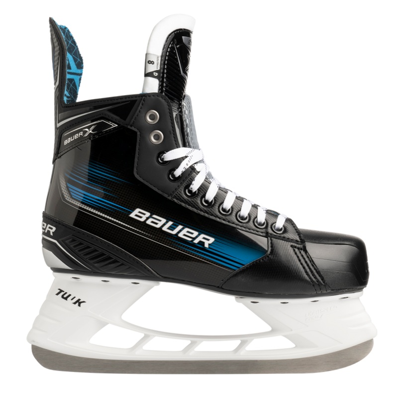 Start skating lessons, join your friends for pickup hockey, and jump into the game that we all love with the Bauer X skate. The Bauer X skate takes its design inspiration from the ever popular Vapor skate family. This recreational skate uses an easy to use and flex boot with more blade touching the ice to help learn you to play and start building confidence with every stride.