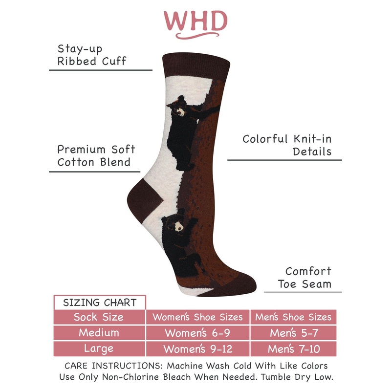 WHD Bear Lovers Socks are made up of 65% Cotton, 20% Polyester, 12% Nylon, and 3% Spandex.
