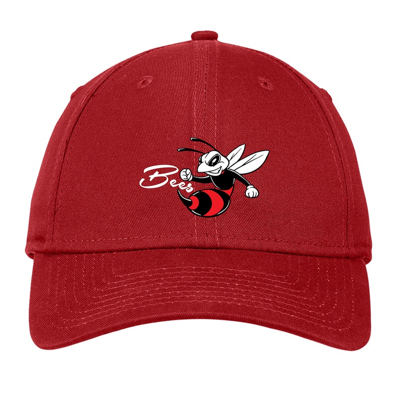 “Bees” Embroidered Logo (Front) New Era NE200 Adjustable Cap in black, white, and red! One size fits most.