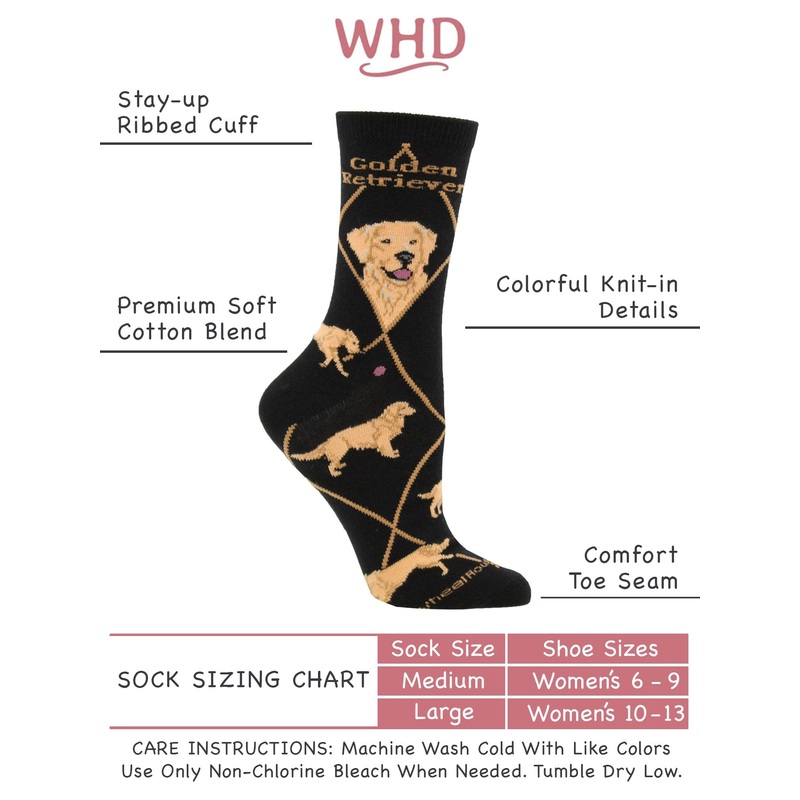Our Golden Retriever crew socks for dog lovers are designed with comfort in mind. The soft cotton blend keeps your feet cozy, while the crew length provides a classic fit thats perfect for pairing with sneakers or boots. Whether youre a Golden owner or simply admire the breed, these socks are a must-have for your collection. Add a touch of Golden Retriever charm to your day with Wheel House Designs.
