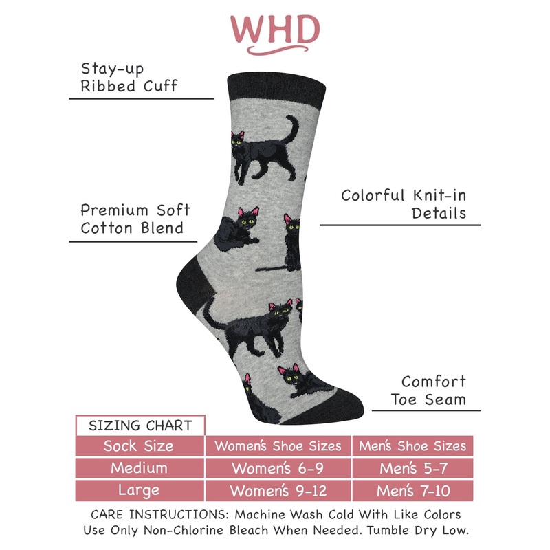 - PERFECT FOR ANIMAL LOVERS – Our black cats aren’t bad luck. Purr-haps these are the socks you’ve been looking for! These Black Cat crew socks from Wheel House Designs are sure to bring a smile to your feet.