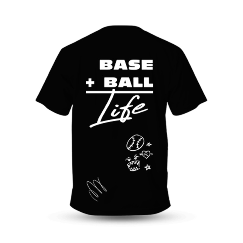 - Bold Base + Ball = Life Back Graphic Statement print that reps your love for the game