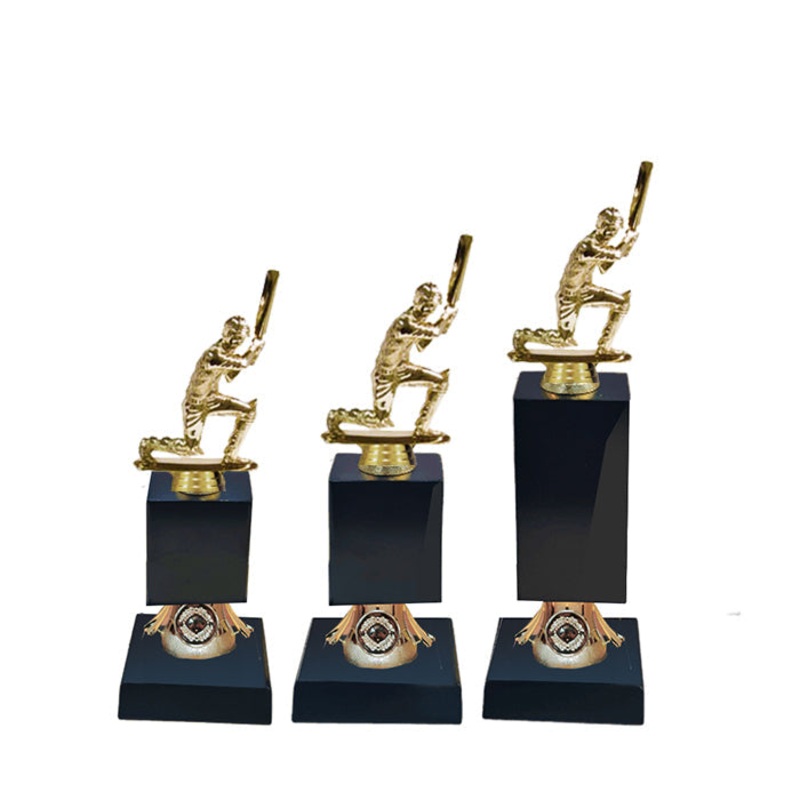 Black Tower V2 Trophies w/ Riser that comes in 3 sizes for three different categories,