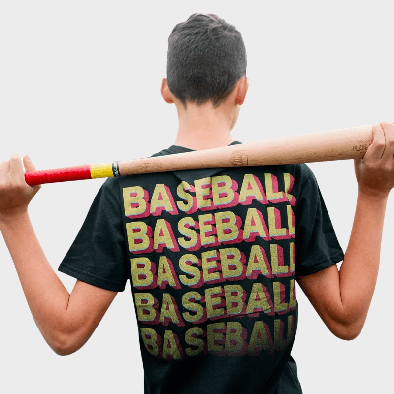 - Striking “Baseball” graphic: Repeated word design on the back with a dynamic blurred effect.