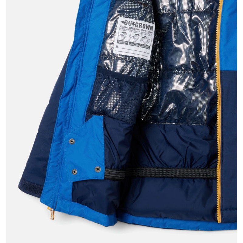 Featuring a fleece-lined hood, adjustable powder skirt, ski pass/media/goggle pockets, drop tail, and reflective details.