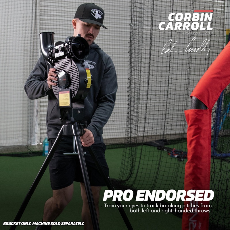 The Breaking Ball Bracket pitches standard fastballs and can be adjusted to throw either left or right-handed “sweeper” pitches at various angles. Bracket only, machine sold separately.