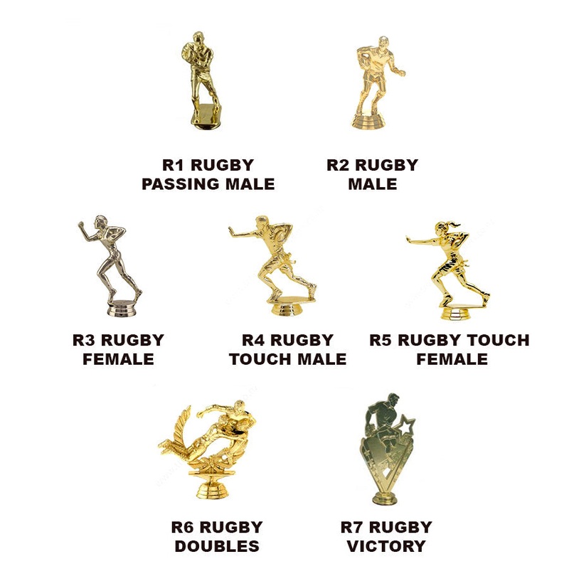 Pictures also showcase a list of available rugby touch/league figurines for the trophy. Please let us know which figurine you would like.