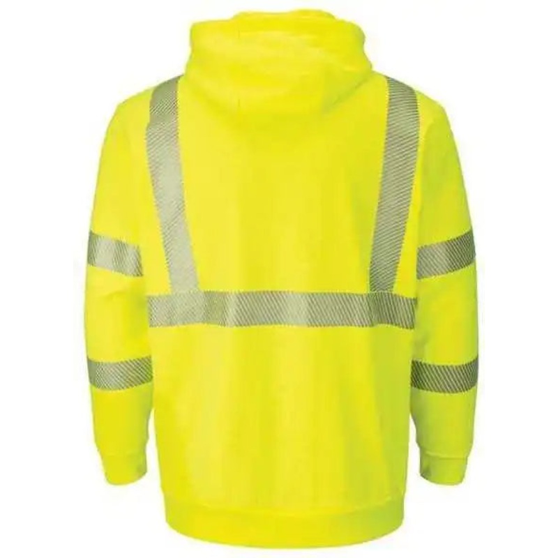 Bulwark SMZ4HVL Hi-Visibility Zip-Front Hooded Fleece Sweatshirt with Waffle Lining – Long Sizes – Yellow Green