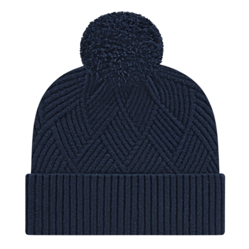 - Premium tri-blend (rayon/polyester/nylon) knit cap with solid color ribbed cuff & pom