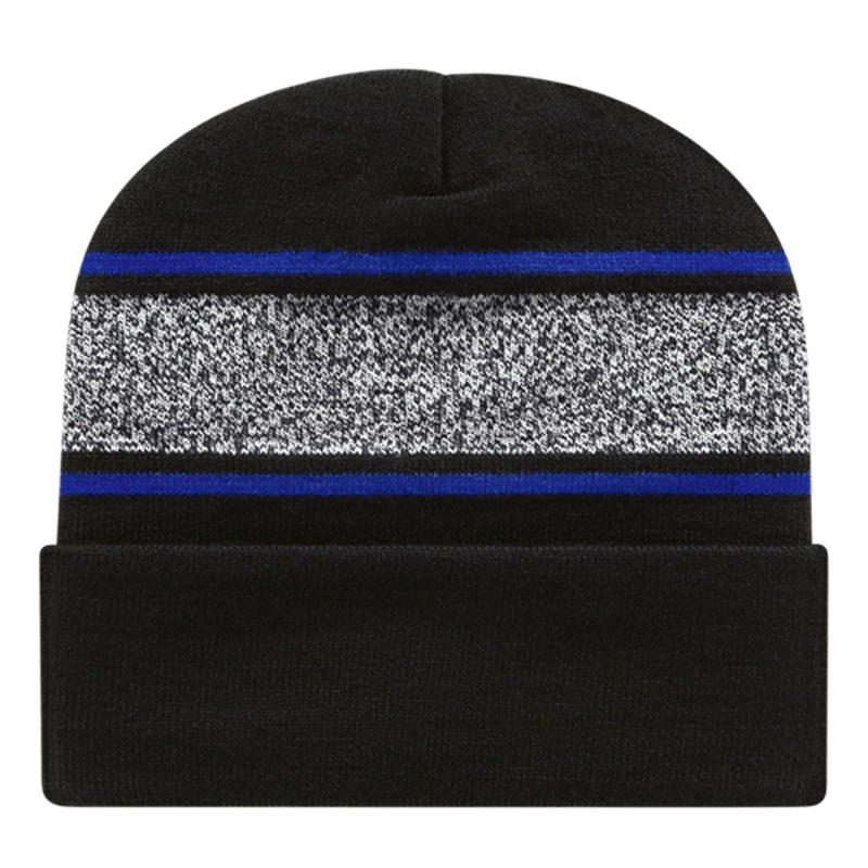- Acrlyic/nylon/spandex blend knit cap with solid color cuff