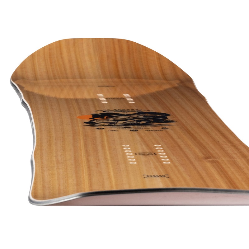 The Carter comes from the brutal and best conditions. From the mind, grit, and riding style of Mark Carter, its wider platform displaces volume for stable float without sacrificing the energy transmission and a reactive pop necessary for taking more tactical lines. The brand new Carter features a bit less tip and tail that will come back to you as underfoot stability in hardpack and a surfy board feel in powder. Yeehaw now.