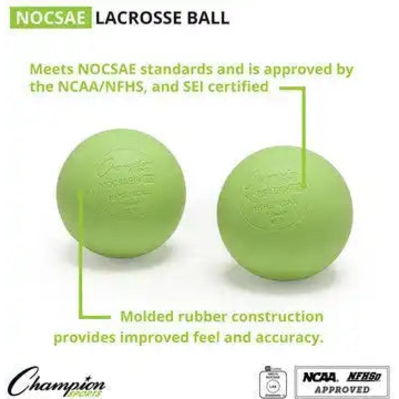 Dominate the field with the Champion Sports NOCSAE Lacrosse Ball. This 12-pack is built to meet all official NOCSAE standards and is NCAA/NFHS approved and SEI certified, ensuring top-notch performance on the field. The molded rubber construction provides superior feel and accuracy for every shot, letting you play with confidence like the pros do. Choose from a vibrant selection of Orange, Yellow, Green, and White to match your team or personal preference.